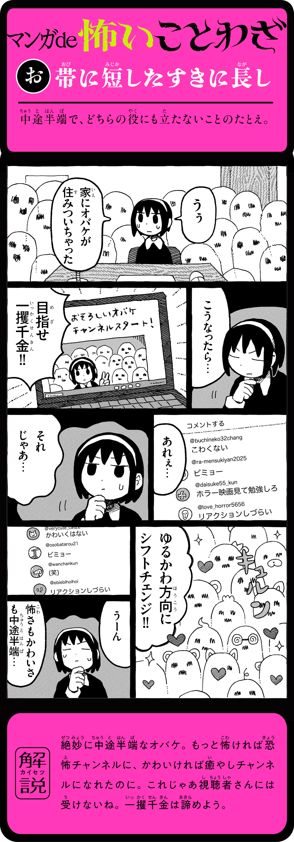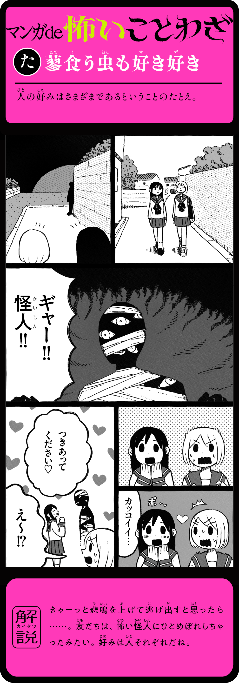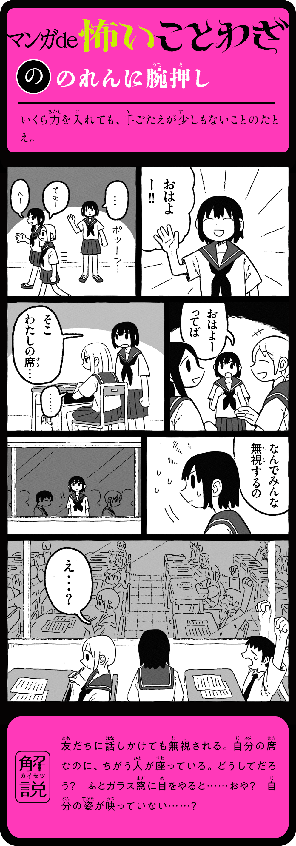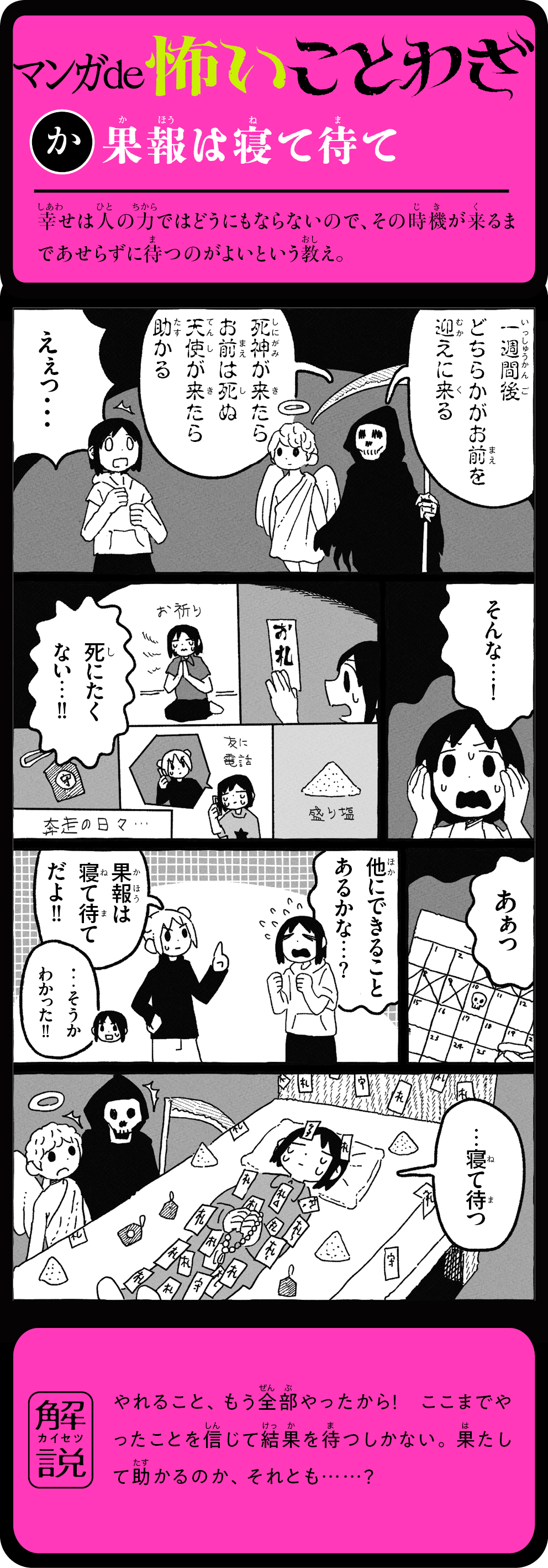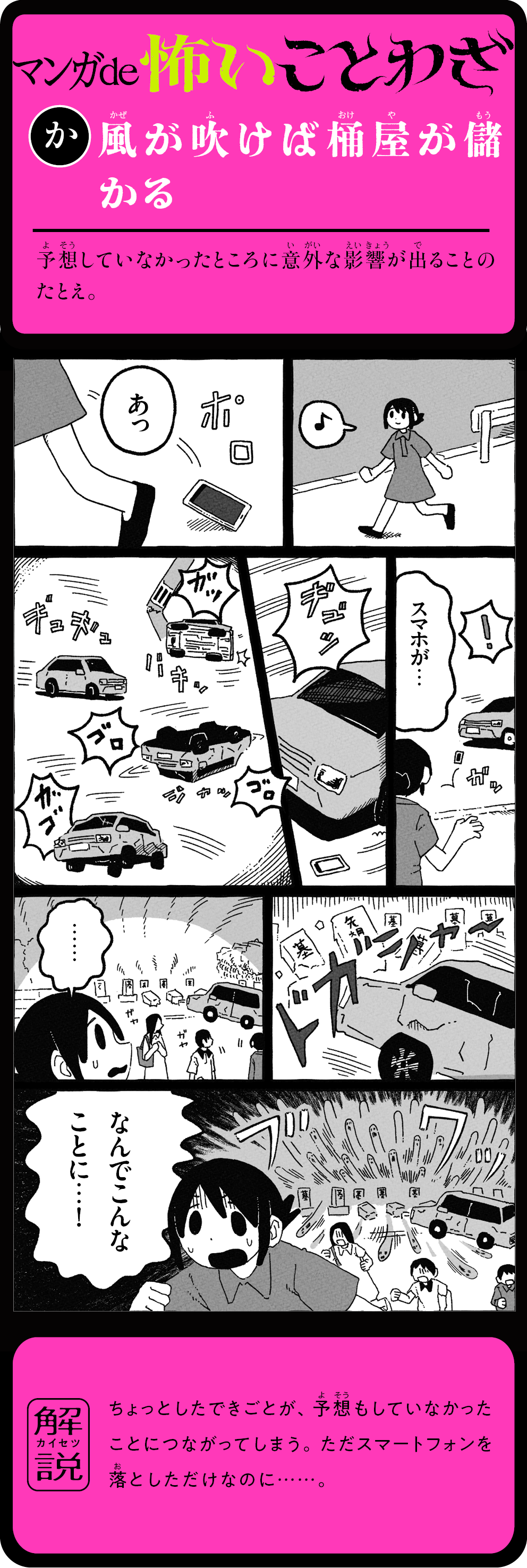 そのことわざ、本当はこんなに怖かった! 怖い話を読むうちに、ことわざの意味が自然と頭に残る! 1話5分で読めて、ためになる。知らないことわざも楽しく身につく、新感覚よみもの。ことわざホラー短編16話+ことわざホラーマンガ12話を収録。