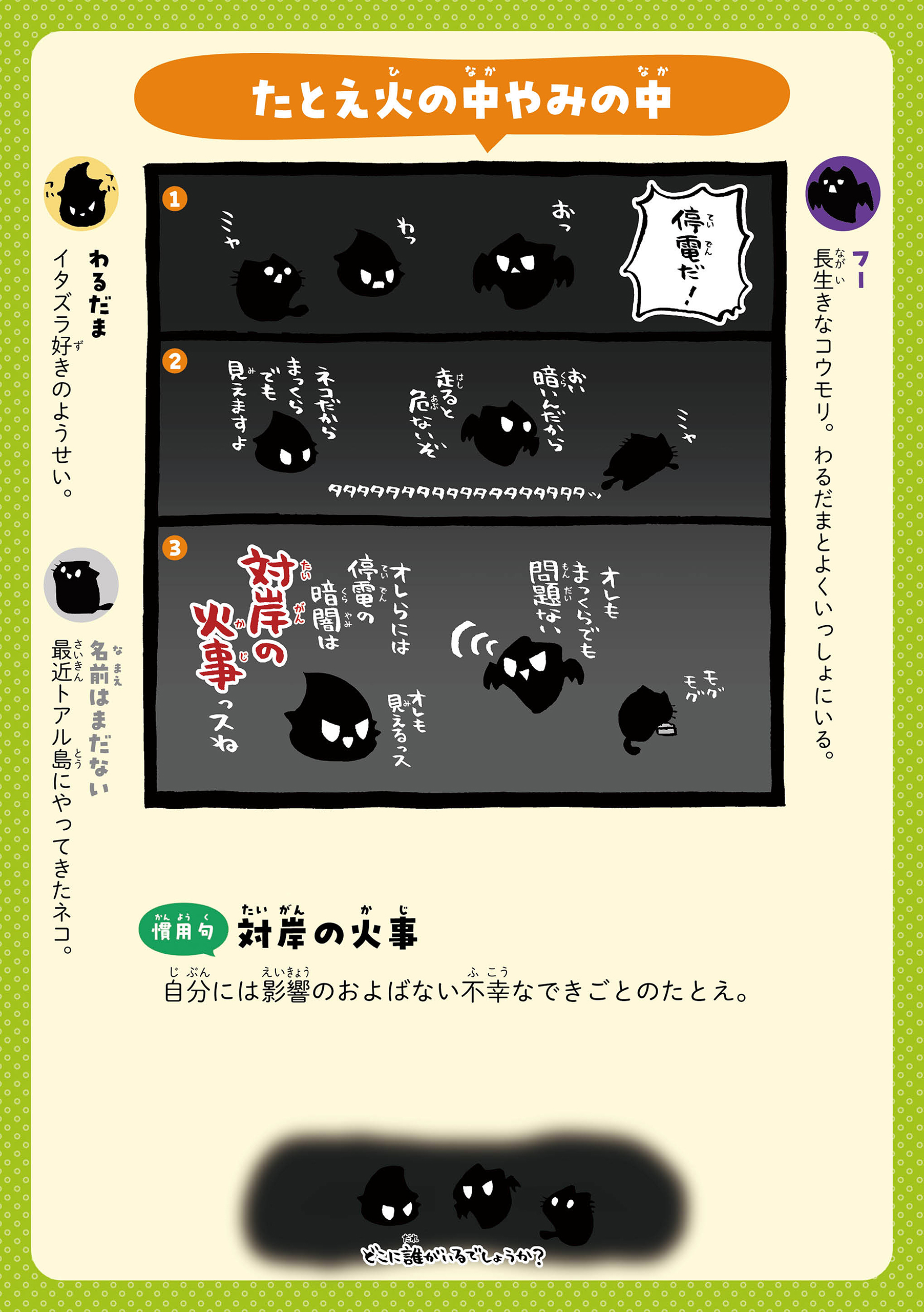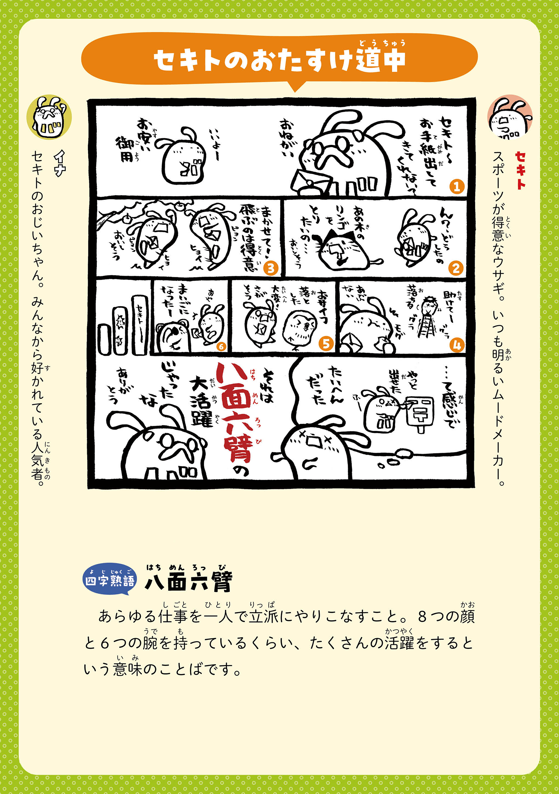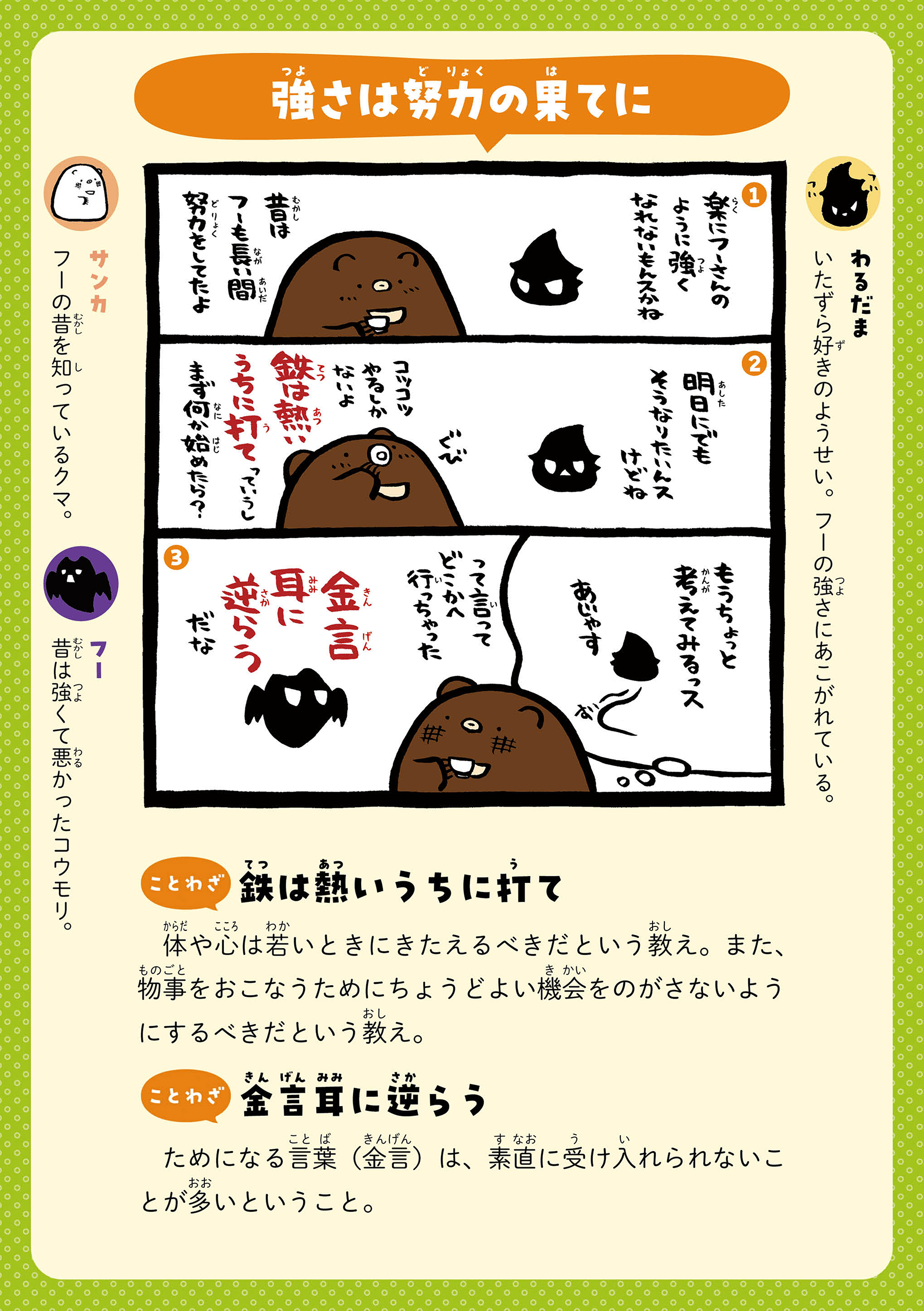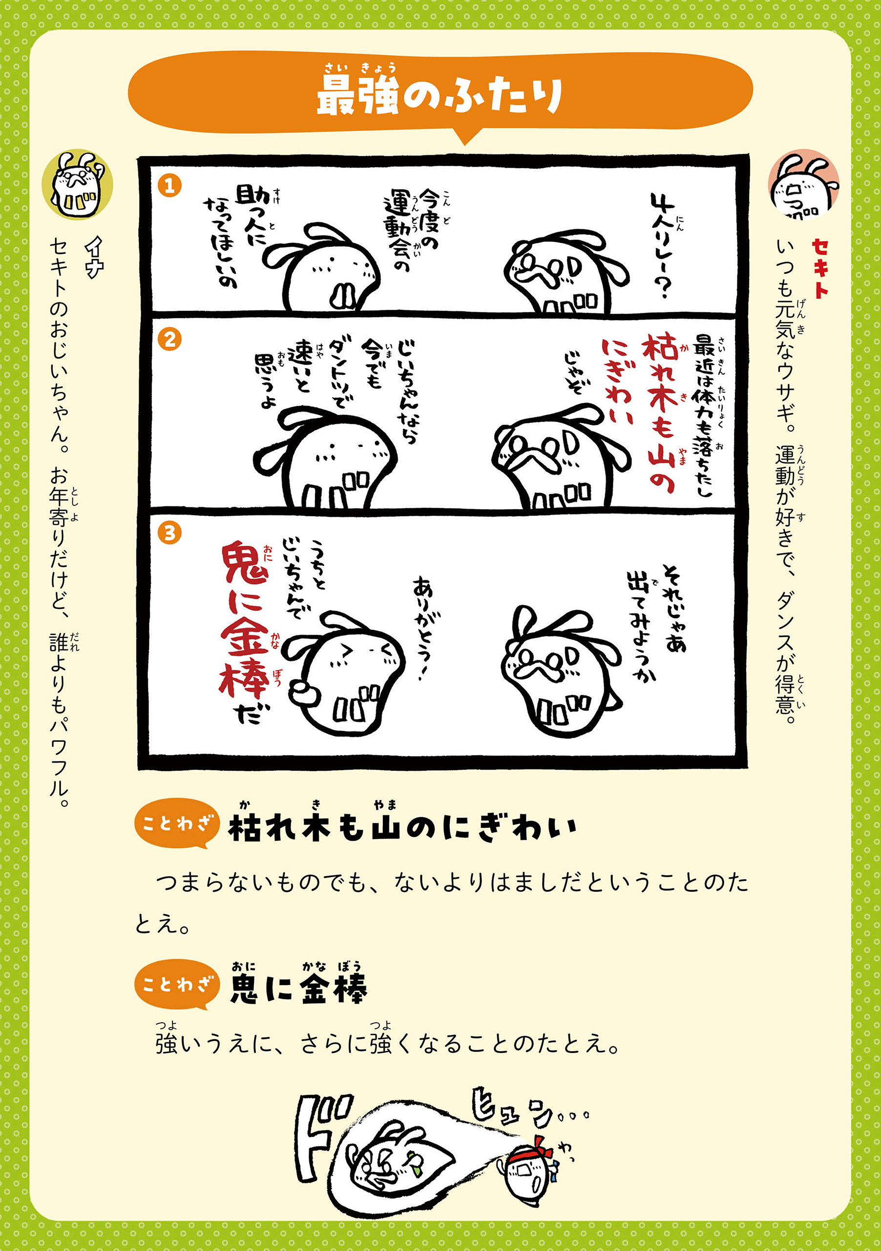 カッパルたちとことばであそぼう! 主人公のカッパの男の子・カッパルと個性的な仲間たちの日常を通して、ことわざや慣用句などの言葉を楽しく学べる連載です。毎週月・木に更新! 参考書籍:「新レインボー小学ことわざ・四字熟語辞典 改訂第2版 (オールカラー)」(Gakken)