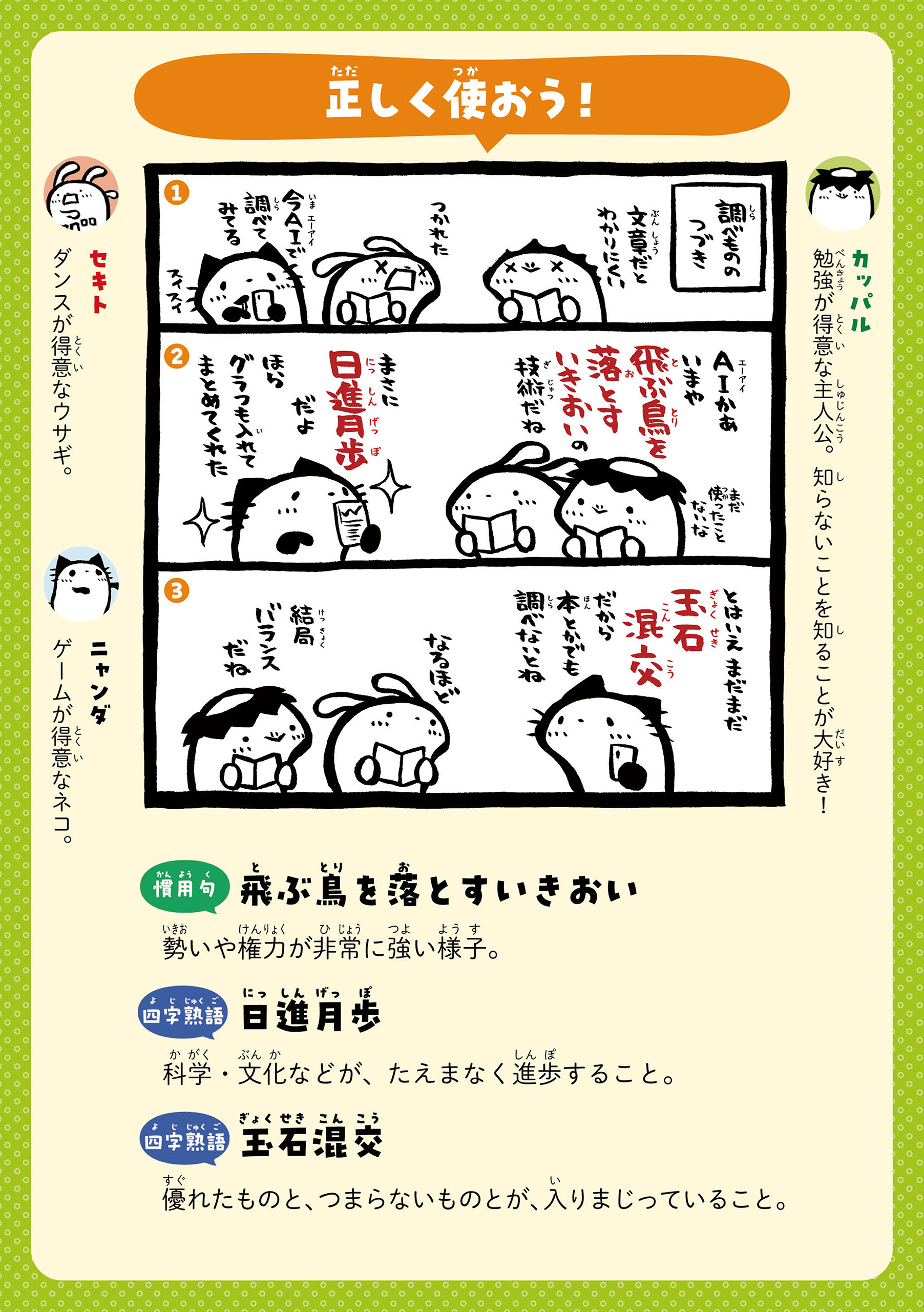 慣用句や故事成語の意味と由来を知れてとても良いです。漫画で楽しくだからもっと良いです。