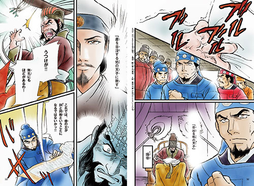隋の皇帝・煬帝の迫力にドキドキ…。小野妹子もさぞ怖かっただろうね…。聖徳太子って柔和なイメージだけど、こんな戦略を練るって、実はかなり強気でイケイケな人だったのかも?