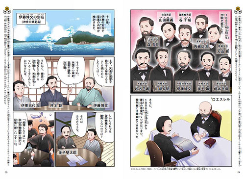 日本初の内閣で、初代内閣総理大臣になった伊藤博文さん。この後、憲法の草案を作るために、自分の別荘にこもって議論をつづけるんだ。憲法はどんな内容になるのかな?目がはなせないね。