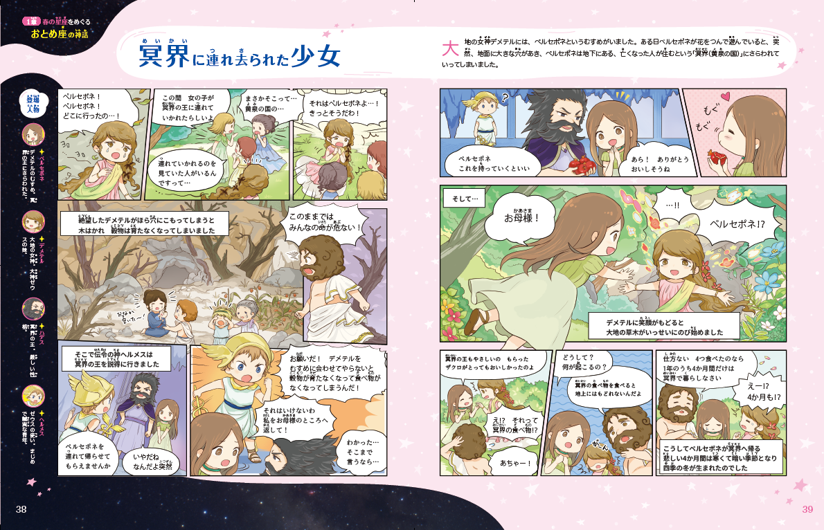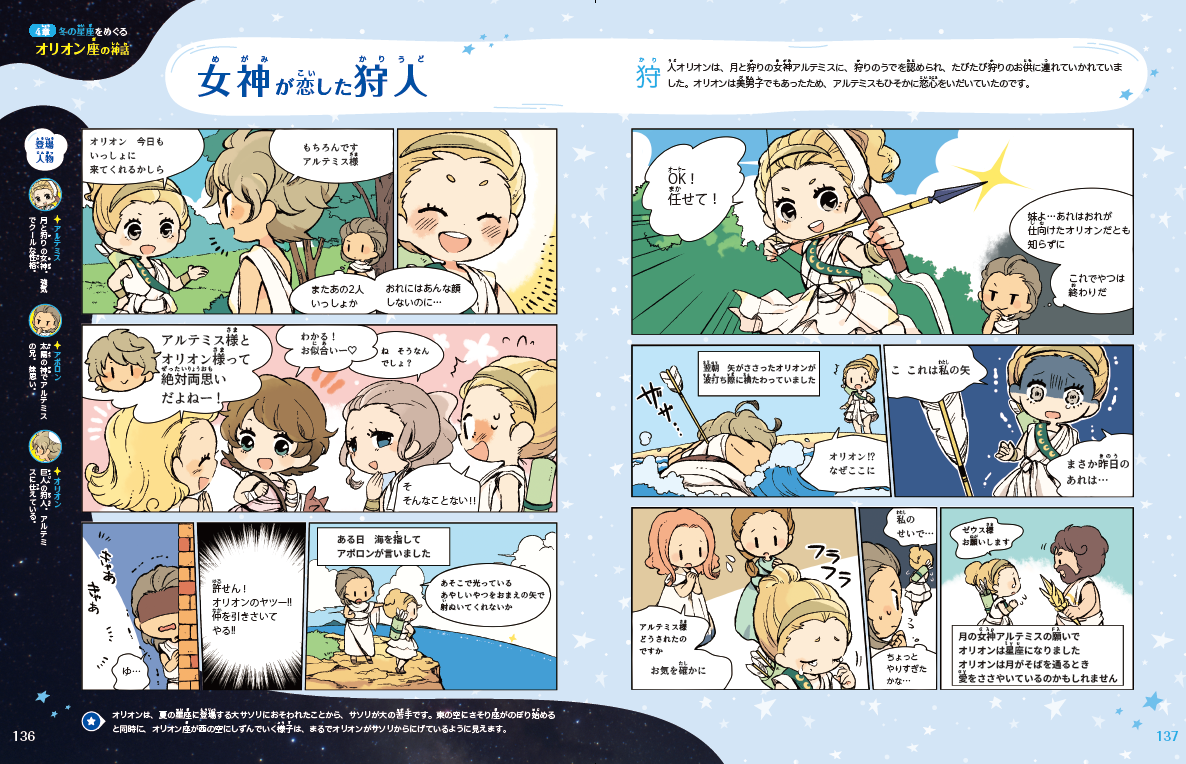 オールカラーの解説とまんがで星座にまつわる神話も楽しめる!
